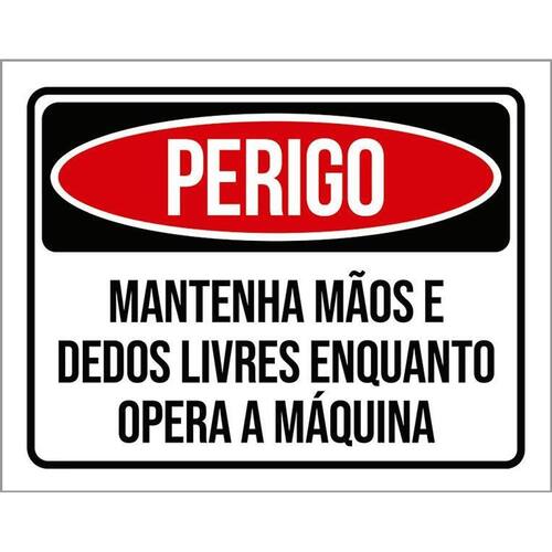 Kit 3 Placas Perigo Mantenha Mãos Livres Placas de sinalizaço fabricadas com poliestireno de alto impacto PSAI de 2mm e impressão ultravioleta.