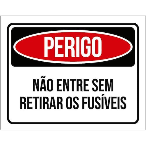 Kit 3 Placas Perigo Não Entre Sem Retirar Os Fusíveis Placas de sinalizaço fabricadas com poliestireno de alto impacto PSAI de 2mm e impressão ultravioleta.