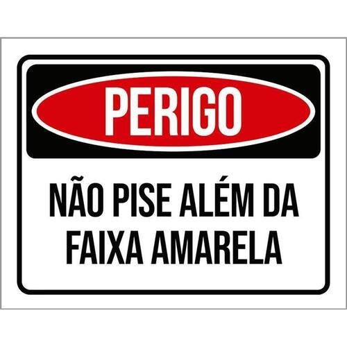 Kit 3 Placas Perigo Não Pise Além Da Faixa Amarela Placas de sinalizaço fabricadas com poliestireno de alto impacto PSAI de 2mm e impressão ultravioleta.