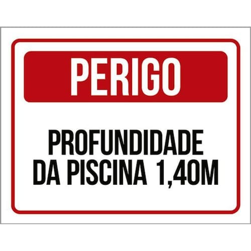 Kit 3 Placas Perigo Profundidade Piscina 1m40 36x46 Placas de sinalizaço fabricadas com poliestireno de alto impacto PSAI de 2mm e impressão ultravioleta.