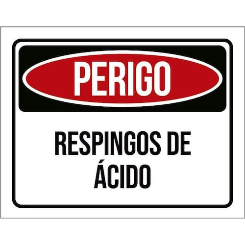 Kit 3 Placas Perigo Respingos De Ácido Placas de sinalizaço fabricadas com poliestireno de alto impacto PSAI de 2mm e impressão ultravioleta.