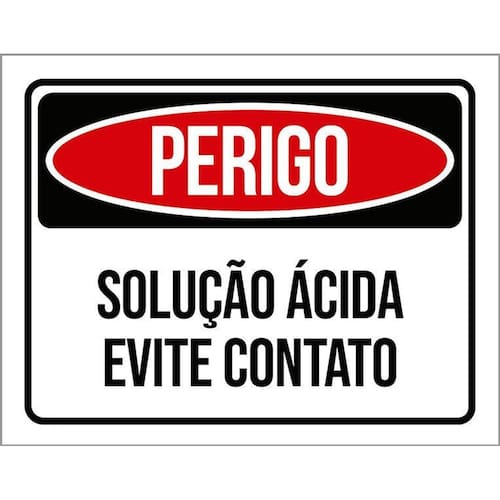Kit 3 Placas Perigo Solução Ácida Evite Contato Placas de sinalizaço fabricadas com poliestireno de alto impacto PSAI de 2mm e impressão ultravioleta.