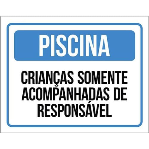 Kit 3 Placas Piscina Crianças Acompanhadas 36x46 Placas de sinalizaço fabricadas com poliestireno de alto impacto PSAI de 2mm e impressão ultravioleta.