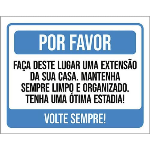 Kit 3 Placas Por Favor Lugar Extensão Sua Casa Airbnb 36x46 Placas de sinalizaço fabricadas com poliestireno de alto impacto PSAI de 2mm e impressão ultravioleta.