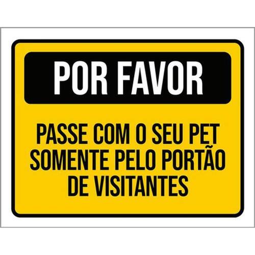 Kit 3 Placas Por Favor Passe Pet Portão Visitantes Placas de sinalizaço fabricadas com poliestireno de alto impacto PSAI de 2mm e impressão ultravioleta.