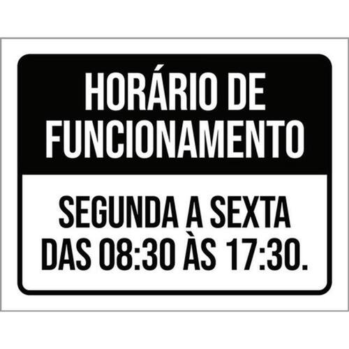 Kit 3 Placas Preta - Horário Funcionamento Segunda Sexta 8 Placas de sinalizaço fabricadas com poliestireno de alto impacto PSAI de 2mm e impressão ultravioleta.