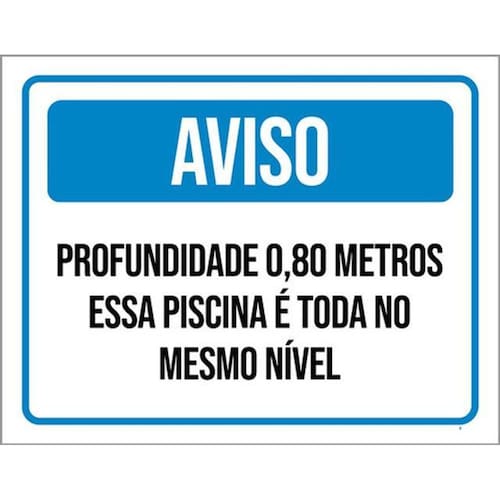 Kit 3 Placas Profundidade Piscina Mesmo Nível 36x46 Placas de sinalizaço fabricadas com poliestireno de alto impacto PSAI de 2mm e impressão ultravioleta.