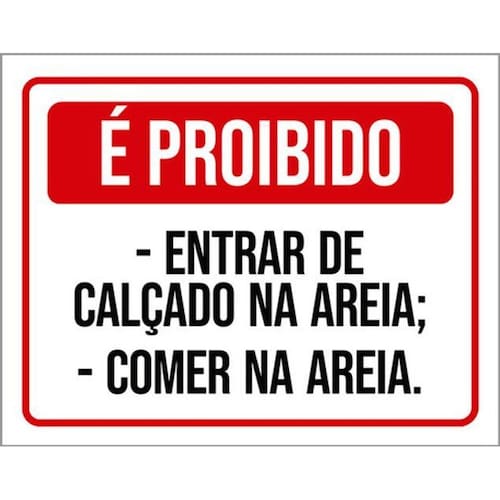Kit 3 Placas Proibido Entrar Calçado Areia Comer Placas de sinalizaço fabricadas com poliestireno de alto impacto PSAI de 2mm e impressão ultravioleta.