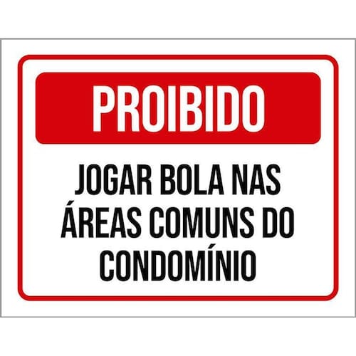 Kit 3 Placas Proibido Jogar Bola Áreas Comuns Condomínio Placas de sinalizaço fabricadas com poliestireno de alto impacto PSAI de 2mm e impressão ultravioleta.