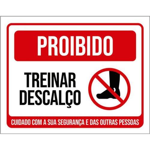 Kit 3 Placas Proibido Treinar Descalço Placas de sinalizaço fabricadas com poliestireno de alto impacto PSAI de 2mm e impressão ultravioleta.
