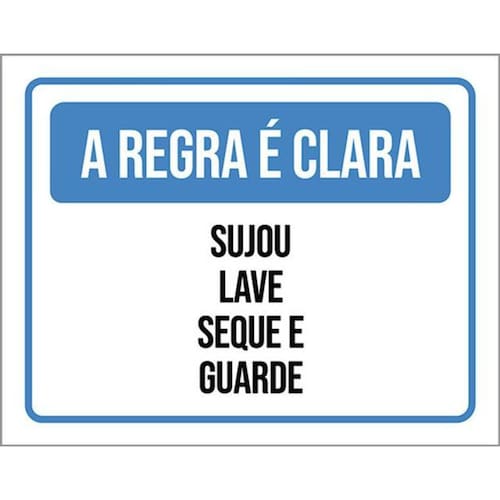 Kit 3 Placas Regra Clara Sujou Lave Seque Guarde Azul 36x46 Placas de sinalizaço fabricadas com poliestireno de alto impacto PSAI de 2mm e impressão ultravioleta.