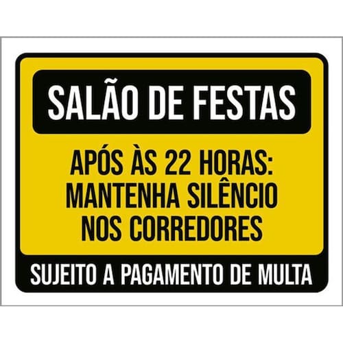 Kit 3 Placas Salão Festas Após 22h Mantenha Silêncio Placas de sinalizaço fabricadas com poliestireno de alto impacto PSAI de 2mm e impressão ultravioleta.