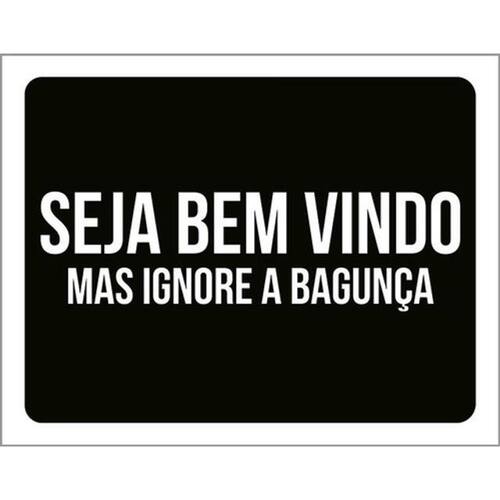 Kit 3 Placas Seja Bem Vindo Ignore Bagunça 36x46 Placas de sinalizaço fabricadas com poliestireno de alto impacto PSAI de 2mm e impressão ultravioleta.