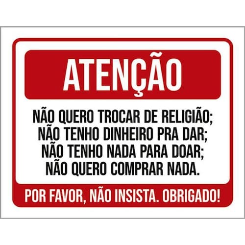 Kit 3 Placas Sinalização - Atenção Não Tenho Dinheiro Placas de sinalizaço fabricadas com poliestireno de alto impacto PSAI de 2mm e impressão ultravioleta.