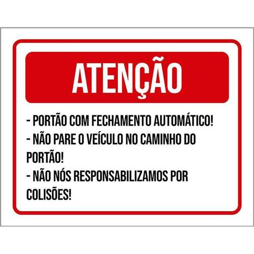 Kit 3 Placas Sinalização - Atenção Portão Fechamento Auto Placas de sinalizaço fabricadas com poliestireno de alto impacto PSAI de 2mm e impressão ultravioleta.