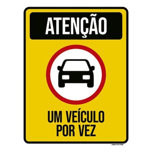 Kit 3 Placas Sinalização - Atenção Um Veículo Por Vez Ícone