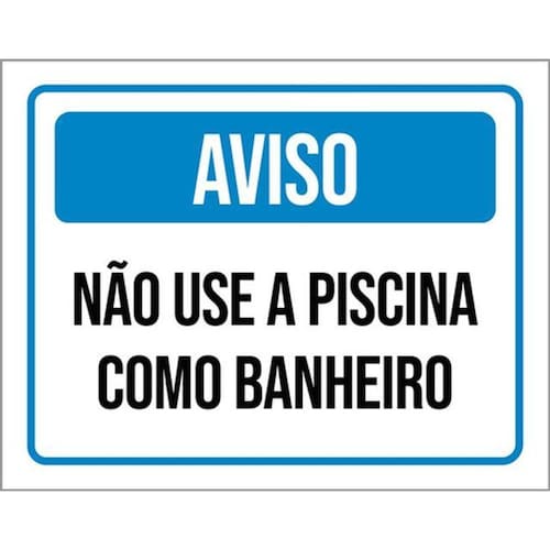 Kit 3 Placas Sinalização Aviso Não Use Piscina Como Banheiro Placas de sinalizaço fabricadas com poliestireno de alto impacto PSAI de 2mm e impressão ultravioleta.