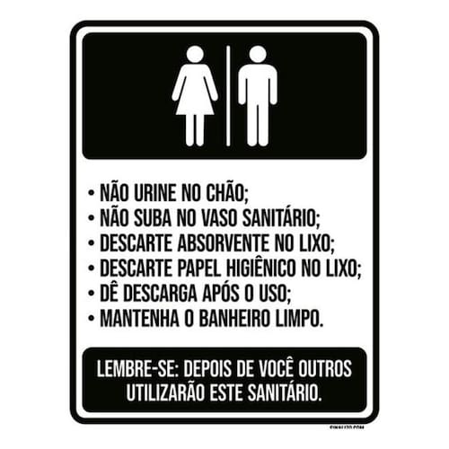 Kit 3 Placas Sinalização - Banheiro Regras De Uso Placas de sinalizaço fabricadas com poliestireno de alto impacto PSAI de 2mm e impressão ultravioleta.