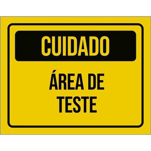 Kit 3 Placas Sinalização - Cuidado Área De Teste Amarelo