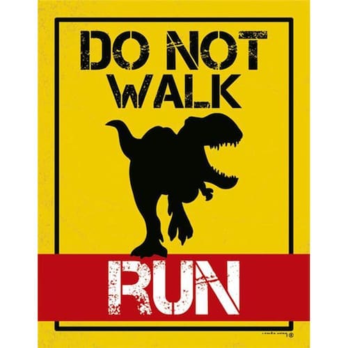 Kit 3 Placas Sinalização - Dont Walk Run Dinossaur Placas de sinalizaço fabricadas com poliestireno de alto impacto PSAI de 2mm e impressão ultravioleta.