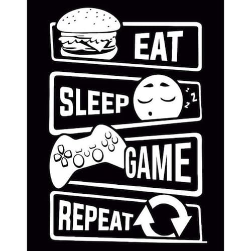 Kit 3 Placas Sinalização - Eat Sleep Game Repeat Preta Placas de sinalizaço fabricadas com poliestireno de alto impacto PSAI de 2mm e impressão ultravioleta.