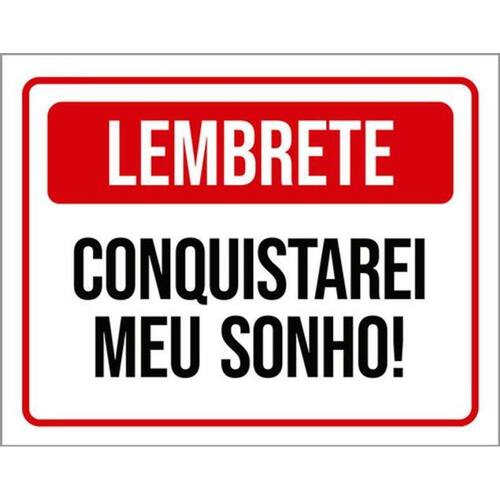Kit 3 Placas Sinalização - Lembrete Conquistarei Meu Sonho Placas de sinalizaço fabricadas com poliestireno de alto impacto PSAI de 2mm e impressão ultravioleta.