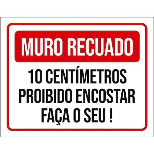 Kit 3 Placas Sinalização - Muro Recuado 10 Centimetros Placas de sinalizaço fabricadas com poliestireno de alto impacto PSAI de 2mm e impressão ultravioleta.
