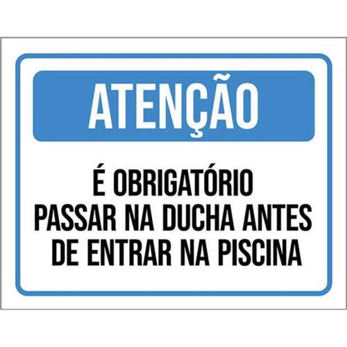 Kit 3 Placas Sinalização - Obrigatório Ducha Antes Piscina Placas de sinalizaço fabricadas com poliestireno de alto impacto PSAI de 2mm e impressão ultravioleta.
