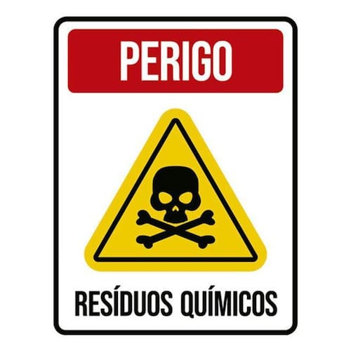Kit 3 Placas Sinalização - Perigo Resíduos Químicos Caveira Placas de sinalizaço fabricadas com poliestireno de alto impacto PSAI de 2mm e impressão ultravioleta.