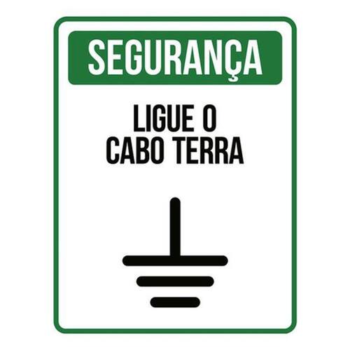Kit 3 Placas Sinalização - Segurança Ligue Cabo Terra Verde Placas de sinalizaço fabricadas com poliestireno de alto impacto PSAI de 2mm e impressão ultravioleta.