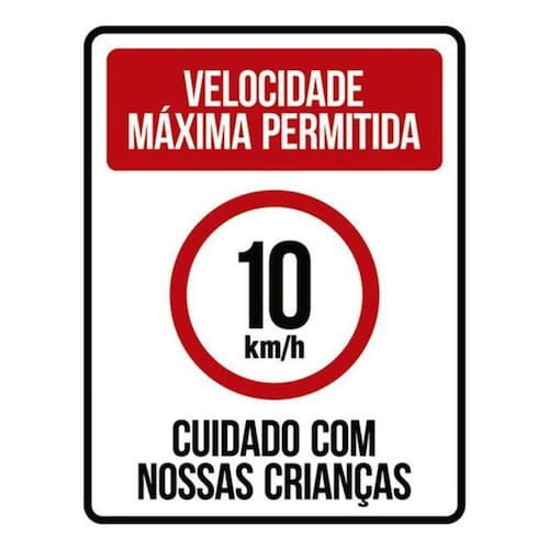 Kit 3 Placas Velocidade Máxima Permitida 10km Crianças 36x46 Placas de sinalizaço fabricadas com poliestireno de alto impacto PSAI de 2mm e impressão ultravioleta.