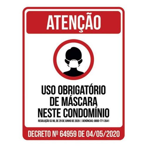 Kit 3 Placas Vermelha Uso Obrigatório Máscara Condomínio