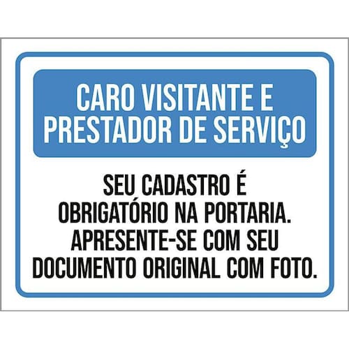 Kit 3 Placas Visitantes Prestadores Cadastro Obrigatório