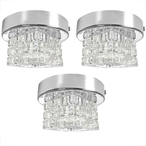 Kit 3 Plafon Spot Cristal Sobrepor Prata Polido Banheiro Bet45 Plafon de Sobrepor Prateado de Cristal K9
