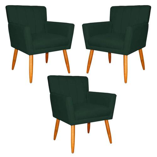 Kit 3 Poltronas Decorativa para Sala de Estar Cecília Suede Verde - Montanaris Decor