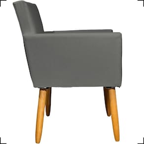 Produzida com estrutura em madeira de eucalipto, a Poltrona Nina oferece alta resistência e durabilidade, enquanto os pés palito em tom castanho proporcionam um visual moderno com inspiração retrô.