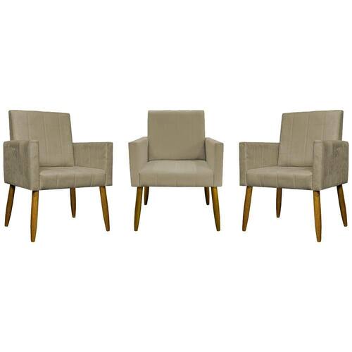KIT 3 POLTRONAS MARI SUEDE CORES PE PALITO 30 CM CASTANHO