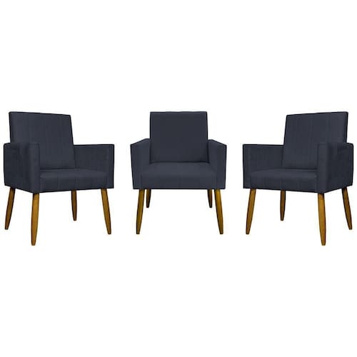 Kit 3 Poltronas Decorativas Confortáveis Mari - Preto Suede