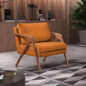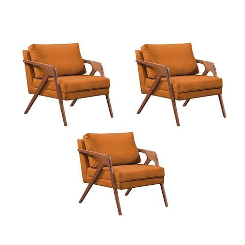 Kit 3 Poltronas Decorativas Mona Premium Base Madeira Maciça Veludo Terracota - Laranja