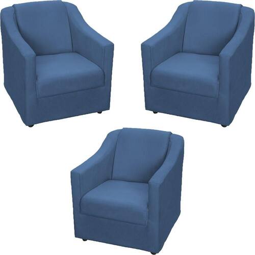 Kit 3 Poltronas Para Sala Mila Suede Cores Pé De Plástico Cromado - Azul-marinho, Suede