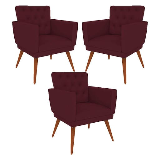 Kit 3 Poltronas Nina com Capitone - Bordô