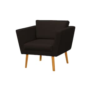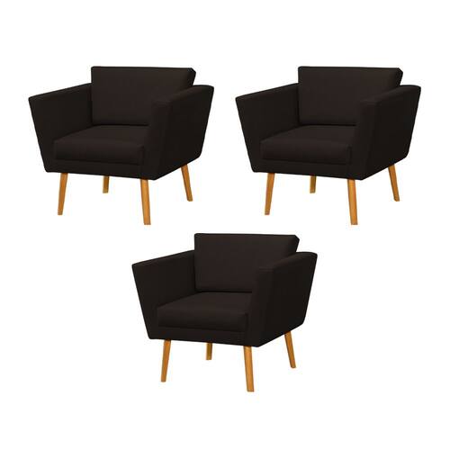 Kit 3 Poltronas Retrô Pés Palito em Madeira Paraty Linho Marrom Escuro