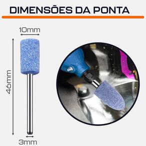 Kit com 3 pontas montadas 10mm cilíndrica rebolo abrasivo azul haste 3mm para micro retíficas dremax - marca: dremax - jogo exclusivo com 3 pontas montadas - diâmetro da haste: 3mm - diâmetro da ponta: 10mm - altura da ponta: 16mm - comprimento total: 46mm - formato: cilíndrica - as pontas montadas azuis permitem um acabamento mais fino que as tradicionais pontas rosas - material da ponta: óxido de alumínio zircônia azul corundum - indicada para limpezas e acabamentos em superfícies - uso em micro retíficas de qualquer marca com mandril de 3mm - indicada para afiação, esmerilhamento e desbaste em metais, joias, pedras preciosas, vidro, entre outros materiais - seu formato facilita o trabalho em locais de difícil acesso - : 90 dias contra defeitos de fabricação a dremax é a primeira e única marca brasileira dedicada exclusivamente às micro retíficas, acessórios e acoplamentos para esta indispensável ferramenta. Seja para trabalhos de precisão, artesanato, modelagem ou reparos, a dremax tem o produto certo para você Como identificar a melhor ponta montada para você - ponta montada amarela: alta dureza para polimento fino - ponta montada azul: :alta dureza para acabamento médio - ponta montadas rosa: alta dureza e tenacidade acabamento grosso - ponta montada borracha verde: flexível, para retificação e polimento precisos - ponta montada de couro: desempenho melhor do que a ponta de borracha verde, também ideal para polimento - ponta montada borracha com abrasivos: retificação mais nítida e rápida - ponta montada de feltro: polimento fino em metais e materiais não metálicos