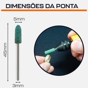 Jogo com 3 Ponta Montada Cônica 5mm de Borracha Abrasiva Haste 3mm para Micro Retifica Dremax - Marca: Dremax - Kit exclusivo com 3 pontas montadas - Diâmetro da cabeça: 5mm - Diâmetro da haste: 3mm - Comprimento total: 45mm - Gramatura: Grão 180 - Material da ponta: Borracha - Material da haste: aço inox - Pontas montadas de borracha Flexível, para retificação e polimento precisos - Uso em micro retíficas e mini lixadeiras de qualquer marca com mandril de 3mm - Seu formato facilita o trabalho em locais de difícil acesso - Uso em micro retíficas de qualquer marca com pinça de 3mm - Indicado para desbaste e semi-acabamento - Remoção de ferrugem de metal enferrujado, tratamento em joias e pré-acabamento em pedras, ouro e prata - Amplamente utilizado em moagem, molde, equipamentos médicos, equipamentos de beleza, manicure, ouro e prata jóias, aço inoxidável, vidro equipamentos, peças de máquinas e outros processos - Muito menos agressivo que tubos de lixa e pontas montadas rosa - Muito utilizado na primeira etapa no processo de polimento - Garantia: 90 dias contra defeitos de fabricação A DREMAX é a primeira e única marca brasileira dedicada exclusivamente às micro retíficas, acessórios e acoplamentos para esta indispensável ferramenta. Seja para trabalhos de precisão, artesanato, modelagem ou reparos, a DREMAX tem o produto certo para você. Marca: Dremax