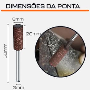 Kit 3 Ponta Montada 8mm Cilíndrica Borracha com Abrasivos Haste 3mm para Micro Retíficas Dremax - Marca: Dremax - jogo com 3 pontas - Diâmetro da Ponta: 8mm - Comprimento: 50mm - Haste das pontas: 3mm - Material: Borracha com Abrasivos - Gramatura: Grão 120 - Pontas montadas de borracha com abrasivos são maleáveis, porém com alto pode de desbaste devido os seus abrasivos - Uso em micro retíficas de qualquer marca com mandril de 3mm - Indicada para afiação, esmerilhamento e desbaste em metais, joias, pedras preciosas, vidro, entre outros materiais - Seu formato facilita o trabalho em locais de difícil acesso - : 90 dias contra defeitos de fabricação A DREMAX é a primeira e única marca brasileira dedicada exclusivamente às micro retíficas, acessórios e acoplamentos para esta indispensável ferramenta. Seja para trabalhos de precisão, artesanato, modelagem ou reparos, a DREMAX tem o produto certo para você. Marca: Não Informado Ean: 7734625987790