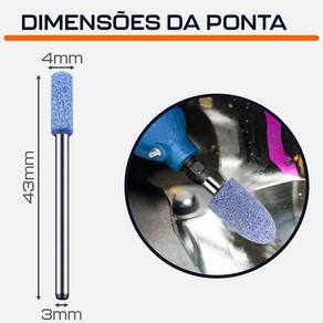 Kit com 3 ponta montada 4mm cilíndrica rebolo abrasivo azul haste 3mm para micro retíficas dremax - marca: dremax - jogo exclusivo com 3 pontas montadas - diâmetro da haste: 3mm - diâmetro da ponta: 4mm - altura da ponta: 12mm - comprimento total: 43mm - formato: cilíndrica - as pontas montadas azuis permitem um acabamento mais fino que as tradicionais pontas rosas - material da ponta: óxido de alumínio zircônia azul corundum - indicada para limpezas e acabamentos em superfícies - uso em micro retíficas de qualquer marca com mandril de 3mm - indicada para afiação, esmerilhamento e desbaste em metais, joias, pedras preciosas, vidro, entre outros materiais - seu formato facilita o trabalho em locais de difícil acesso - garantia: 90 dias contra defeitos de fabricação a dremax é a primeira e única marca brasileira dedicada exclusivamente às micro retíficas, acessórios e acoplamentos para esta indispensável ferramenta. Seja para trabalhos de precisão, artesanato, modelagem ou reparos, a dremax tem o produto certo para você Como identificar a melhor ponta montada para você - ponta montada amarela: alta dureza para polimento fino - ponta montada azul: :alta dureza para acabamento médio - ponta montadas rosa: alta dureza e tenacidade acabamento grosso - ponta montada borracha verde: flexível, para retificação e polimento precisos - ponta montada de couro: desempenho melhor do que a ponta de borracha verde, também ideal para polimento - ponta montada borracha com abrasivos: retificação mais nítida e rápida - ponta montada de feltro: polimento fino em metais e materiais não metálicos Marca: Dremax