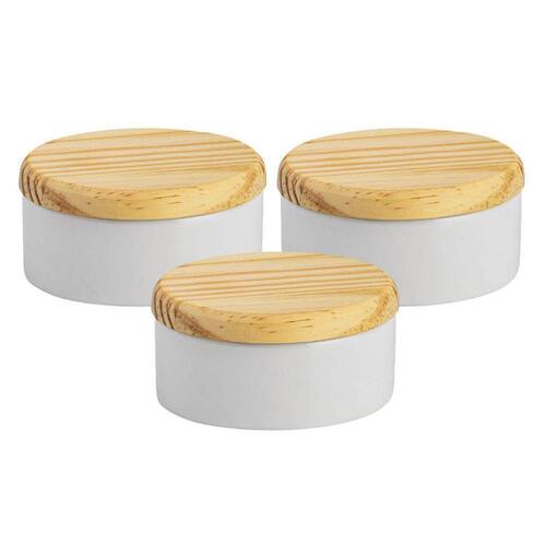 Kit 3 porta joia porcelana tampa madeira potinho louça 8,5cm