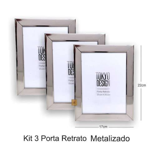 Kit 3 Porta Retrato Metalizado Luxo 15x20 Moldura de Fotos Tokyo Design