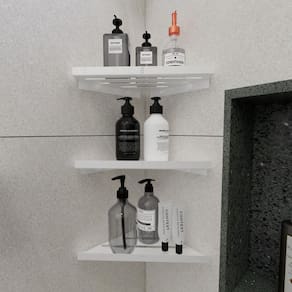 3 Porta Shampoo Sabonete Suporte Canto Parede Banheiro.