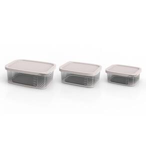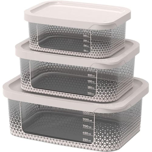 Kit 3 potes para alimentos transp. Retangular p/m/g com tampa